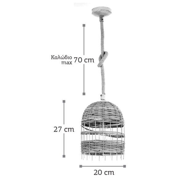 InLight Κρεμαστό φωτιστικό από ρατάν και λευκό μέταλλο (4467 Β-Ρατάν)