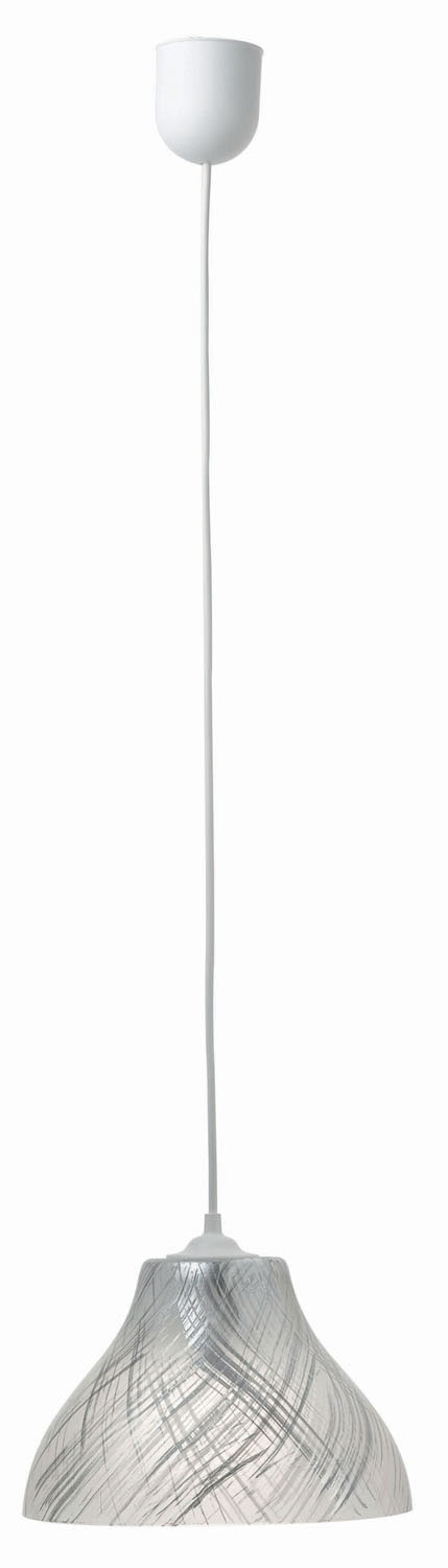 Φωτιστικό μονόφωτο γυάλινο σε μοντέρνα γραμμή σε χρώμα λευκό με ασημί πινελιές και ανάρτηση καλώδιο λευκό Ε27 Φ24