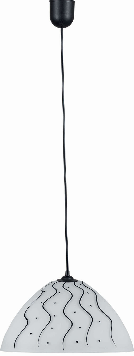 Φωτιστικό μονόφωτο γυάλινο σε χρώμα λευκό με λεπτομέρειες μαύρες και ανάρτηση καλώδιο μαύρο Ε27 Φ25