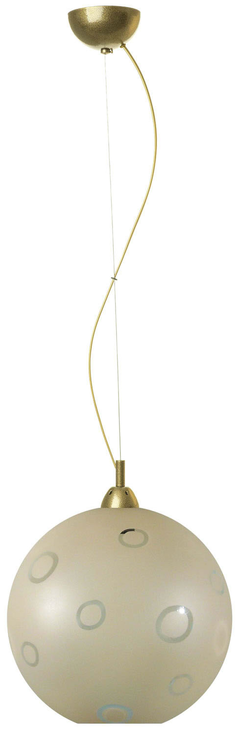 Φωτιστικό μονόφωτο γυάλινο μπάλα σε χρώμα μελί με διάφανους κύκλους και συρματοσχοινο μπρονζέ Ε27 Φ30