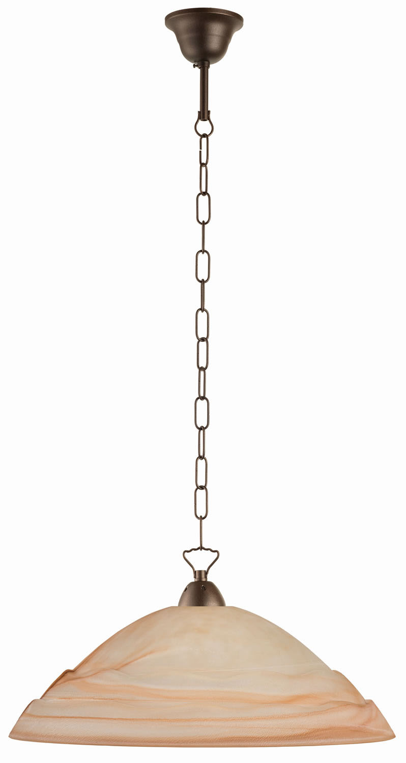 Φωτιστικό μονόφωτο γυάλινο κλασικό σε χρώμα καφέ αλάβαστρο και αλυσίδα σκουριά Ε27 Φ45