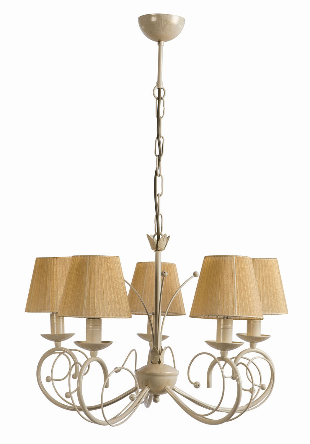 Φωτιστικό Πολύφωτο 5φ Ε14 σε country γραμμή μεταλλικό σε χρώμα κρεμ με πατίνα χρυσή και αμπαζούρ