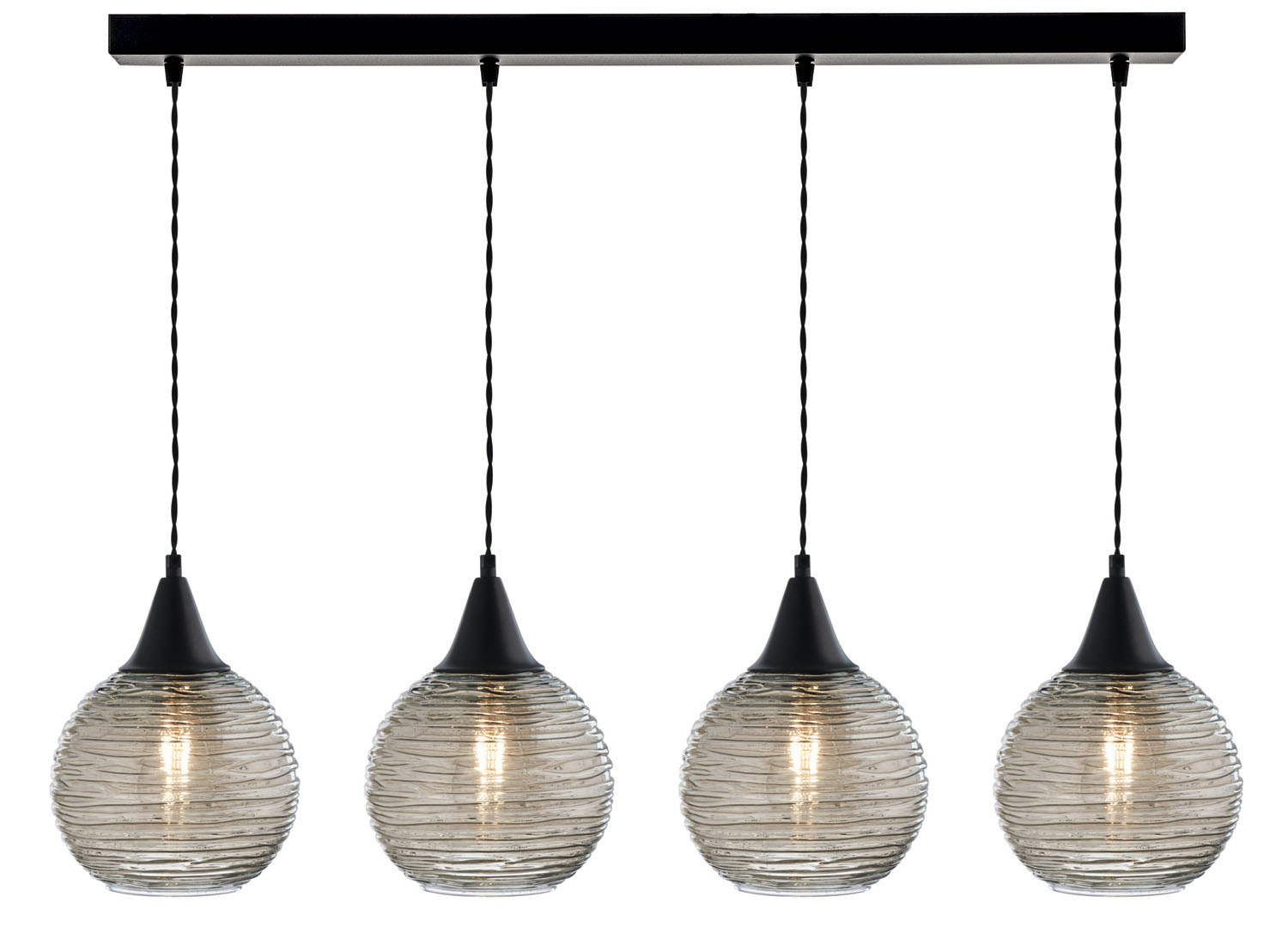 Φωτιστικό πολύφωτο ράγα 4φ Ε27,γυαλί σε χρώμα φιμέ, μεταλλικά μέρη μαύρα και καλώδιο υφασμάτινο στριφτό μαύρο