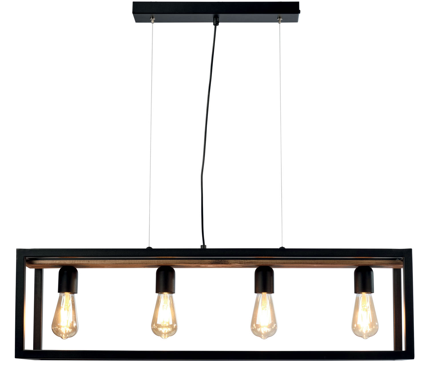 Φωτιστικό Πολύφωτο 4φ Ε27 σε μοντέρνα γραμμή σε ορθογώνιο μεταλλικό σκελετό και ξύλο σε φυσικό σκούρο χρώμα