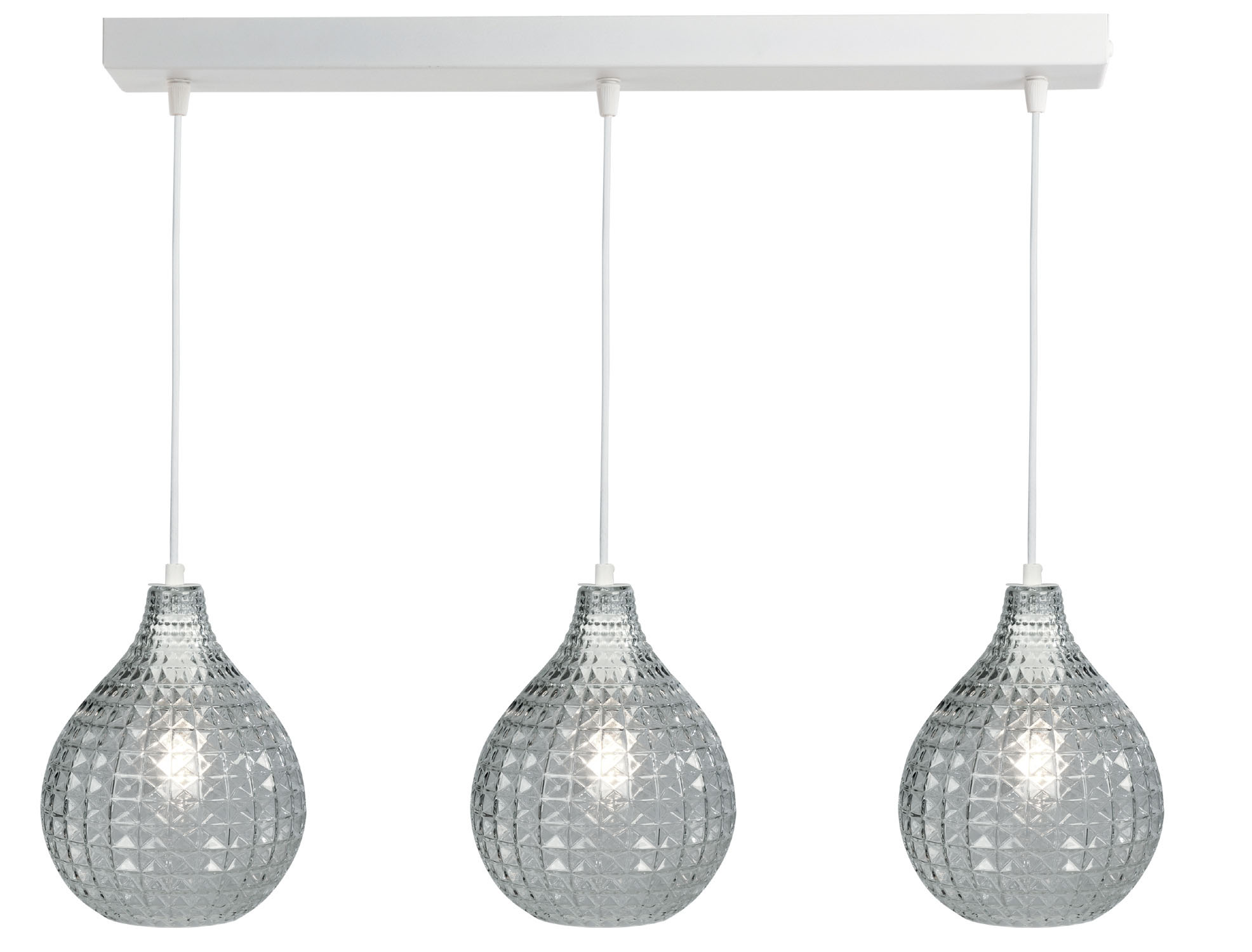Φωτιστικό Πολύφωτο 3φ Ε27 σε μοντέρνα γραμμή, ράγα μεταλλική λευκή, γυαλί διάφανο και καλώδιο υφασμάτινο