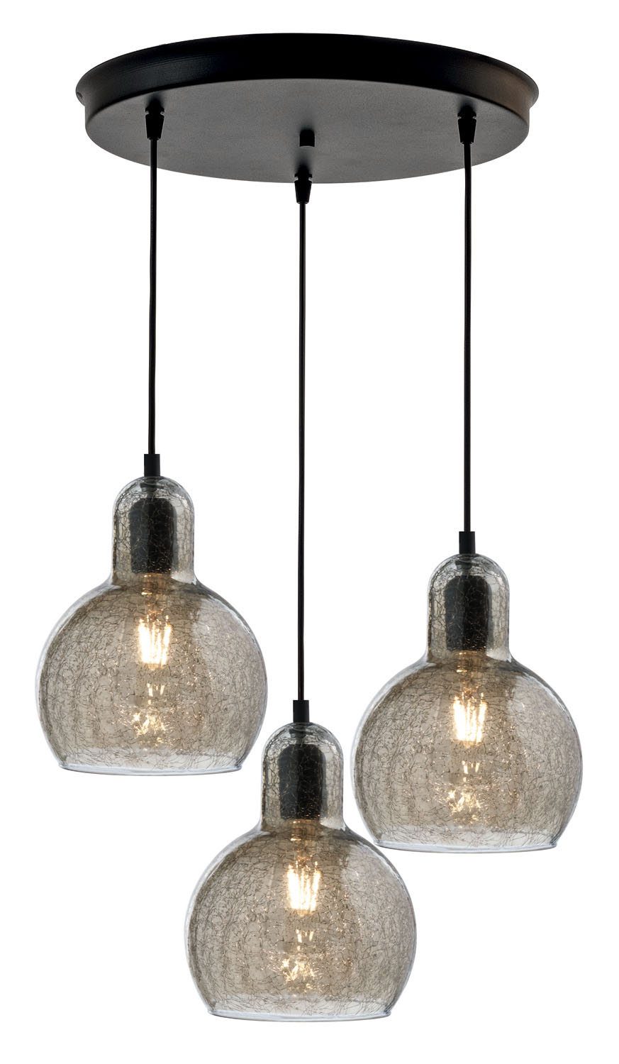 Φωτιστικό Πολύφωτο 3φ Ε27 σε μοντέρνα γραμμή ροζέτα μεταλλική μαύρη με γυαλί φιμέ κρακελέ