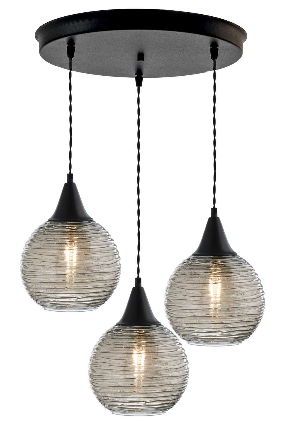 Φωτιστικό πολύφωτο ροζέτα 3φ Ε27,γυαλί σε χρώμα φιμέ, μεταλλικά μέρη μαύρα και καλώδιο υφασμάτινο στριφτό μαύρο