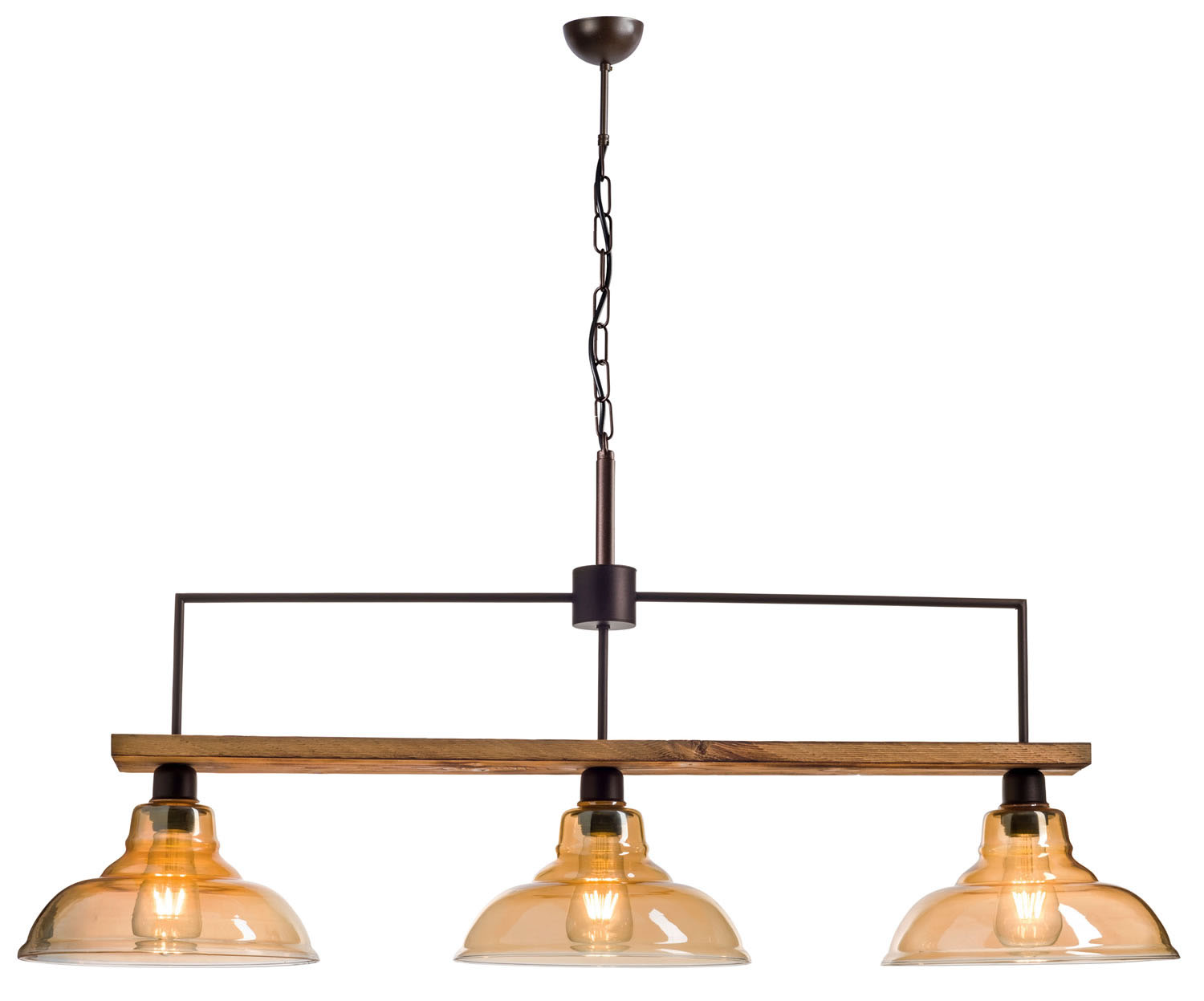 Φωτιστικό Πολύφωτο 3φ Ε27 σε μοντέρνα γραμμή με ξύλο σε χρώμα μελί smoked μεταλλικά μέρη σε σκουριά με γυαλί μελί