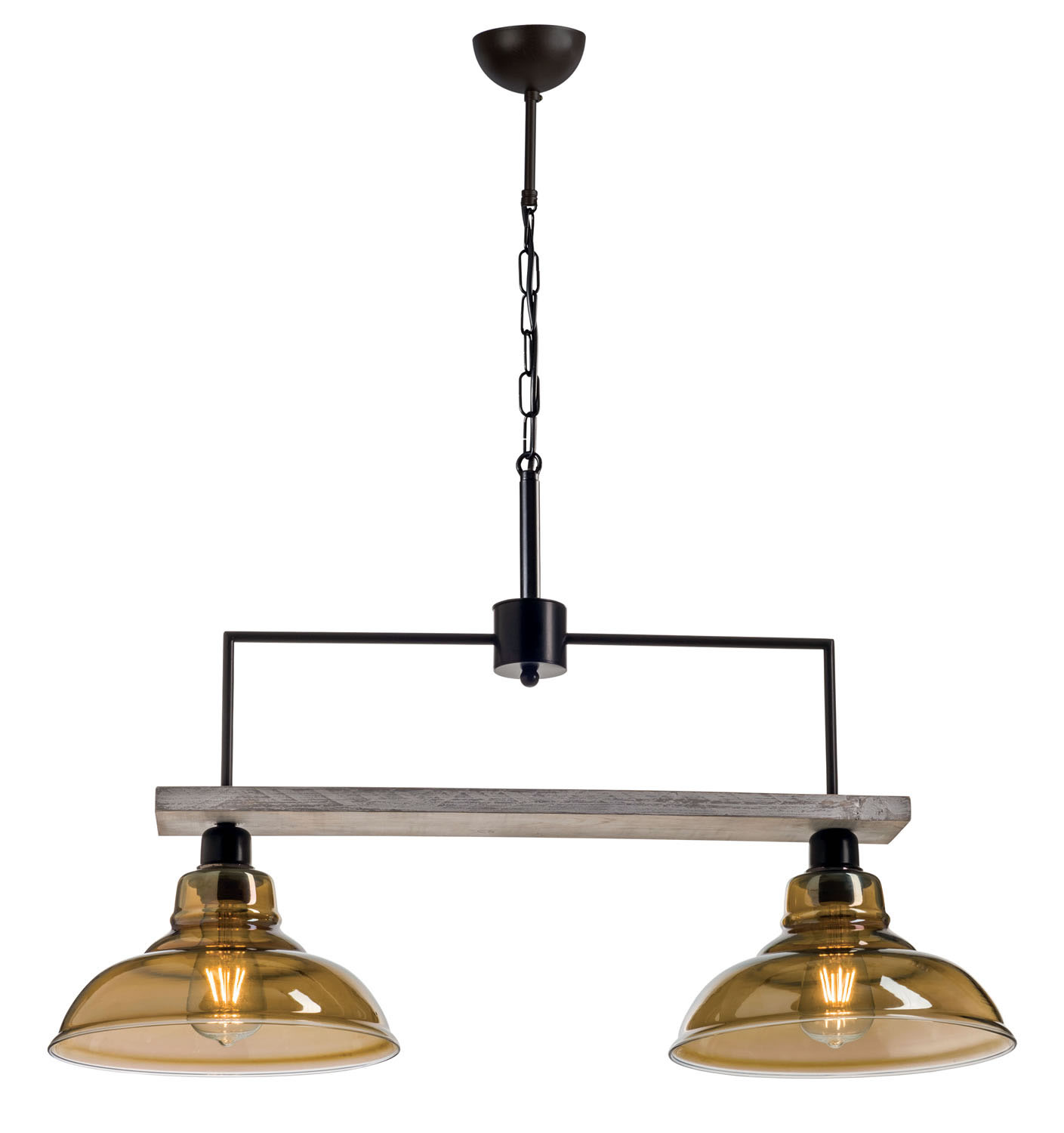 Φωτιστικό Πολύφωτο 2φ Ξύλο/Μέταλλο μαύρο/Γυαλί Ε27