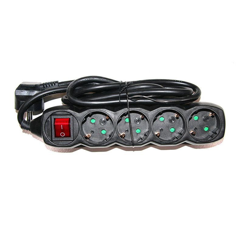Πολύπριζο Μαύρο Με Διακόπτη & Καλώδιο 1,5μ 3×1.5mm2 Με 4 πρίζες σούκο