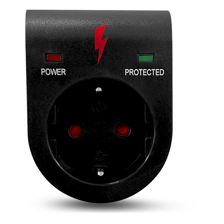Πρίζα σούκο με προστασία υπέρτασης μαύρη