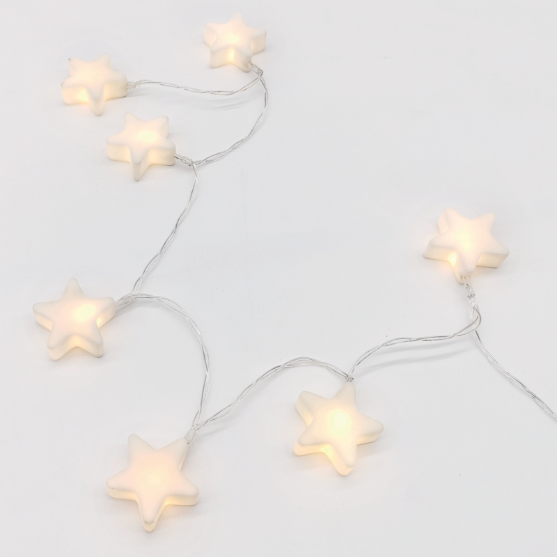 ^ “SILICONE PLASTIC STARS”, 10 LED STRING LIGHTS WITH BATTERIES (3xAA), WARM WHITE, IP20, 135+30cm, TRANSPARENT LEAD CABLE