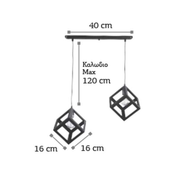InLight Κρεμαστό φωτιστικό από μαύρο μέταλλο (4400-2-BL-ΡΑΓΑ)