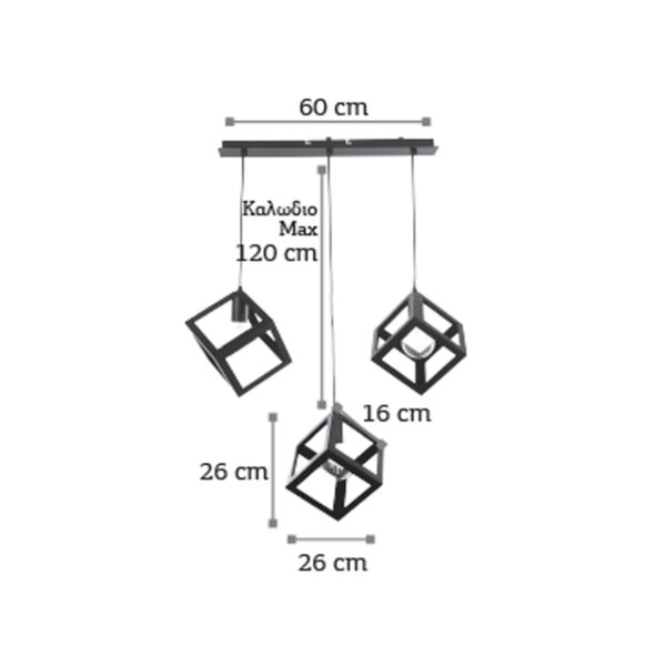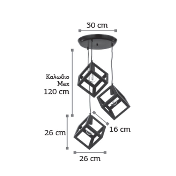 InLight Κρεμαστό φωτιστικό από μαύρο μέταλλο (4400-3-BL-ΡΑΓΑ)