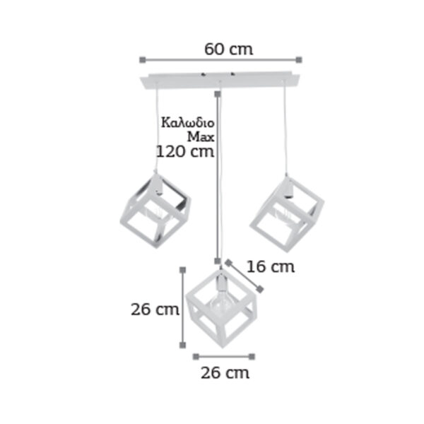 InLight Κρεμαστό φωτιστικό από λευκό μέταλλο (4400-3-WH-ΡΑΓΑ)